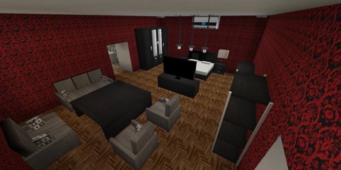 Decoration and Construction Mod for those who want to build a realistic house or apartment in Minecraft Bedrock. Using new decorations, furniture and blocks you will build such rooms, examples of which are shown in the screenshots.