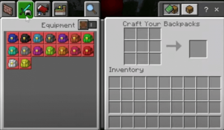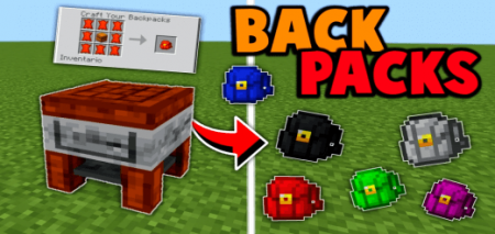 BackPacks Minecraft Bedrock Mod adds 16 types of backpacks to your game. Use backpacks to expand your inventory and travel more comfortably.