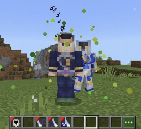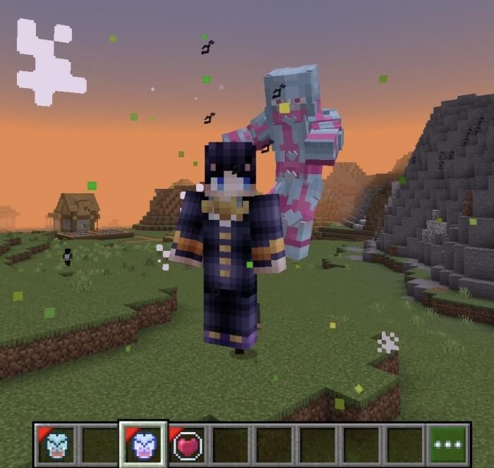 JoJo's Bizarre Adventure Stand Disc Mod allows you to summon your own Stand using the Stand Disc in Minecraft Bedrock. Look at the screenshots how it will work in the game.