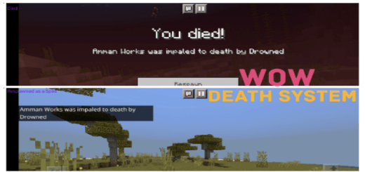 WOW Death System Add-on will change the Death System and make it like in the game World of Warcraft. After death, you become a spirit and you need to run to Steve's corpse in order to return.