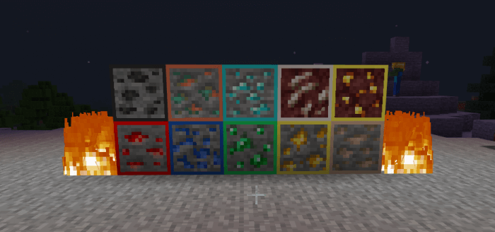 Outlined Ores Addon ore with a border to make it easier to find in dark mines.