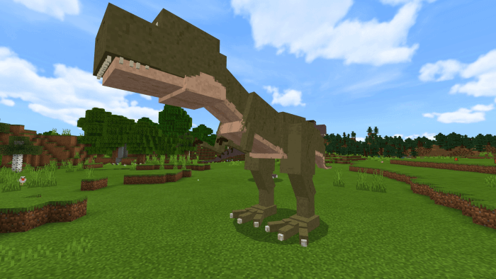T-Rex Addon of a huge T-Rex dinosaur in Minecraft Bedrock.