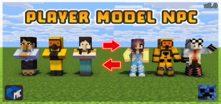 Player Model NPC Addon changes the texture of mobs and locals, you will get new NPC player models in Minecraft.
