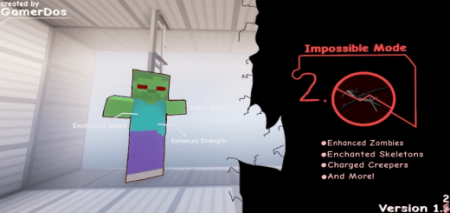 Impossible Mode 2.0 Addon will make your survival incredibly difficult and impossible. The mod will add many different features that will make life difficult for Steve.