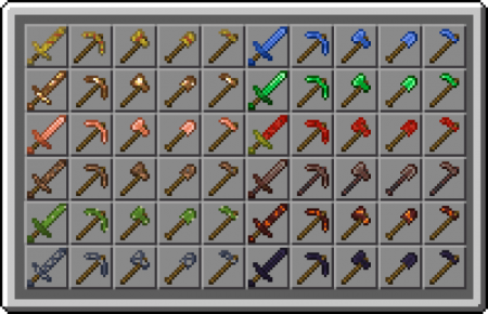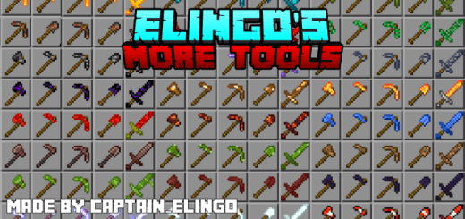 Elingo's More Tools Addon 305 new items of weapons, pickaxes, axes and other tools in Minecraft.