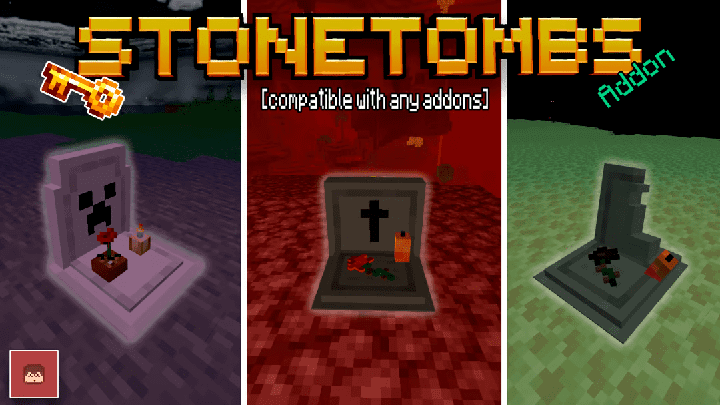 StoneTombs Addon mine 3-12-2025, 04:13 3 069 Addons 1.18 / Addons 1.19 / Addons 1.20 / Addons 1.21 StoneTombs Mod will add tombs that remain after the death of a player, you can return to the place of death and pick up the lost loot. 1 More