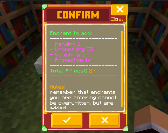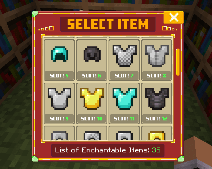 Enchant+ Add-on mine 18-03-2024, 13:41 516 Addons / Addons 1.20 Enchant+ Addon for new enchantments in Minecraft.Installation guile:- Download file Addon;- Use minecraft- Open the downloaded file to install;- Activate the settings;- Play with the new mod!enchant_table.mcaddon [257.48 Kb] (downloads: 7) enchant_table.zip [384.55 Kb] (downloads: 1)