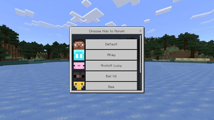 Morph Into Mobs Addon allows you to become the mob of your choice.