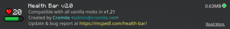 Health Bar – Texture Pack / Addon mine 13-02-2025, 14:46 502 Addons 1.21 / Textures Health Bar - a useful texture with a mod that will show the Health Bar above players and mobs in Minecraft.Installation guile:- Download .mcpack file;- Use minecraft- Select a texture in the settings menu;- Enjoy graphics!health-bar-2_2_0.mcpack [128.75 Kb] (downloads: 35)