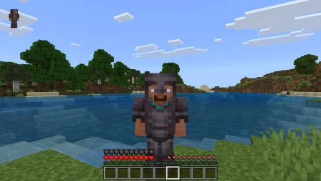 Know what you’re rocking at a glance. The Colorful Armor Bar Mod takes Bedrock’s plain HUD and swaps the armor icons to match your gear, so your bar isn’t just “full or not”—it actually looks like your set. Leather pops a warm brown, chainmail goes steel-gray, iron shines silver, gold is bright yellow, diamond hits that clean aqua/teal, and netherite lands a dark, heavy tone. It’s a tiny change that makes PvP, screenshots, and everyday survival feel cleaner and easier to read.