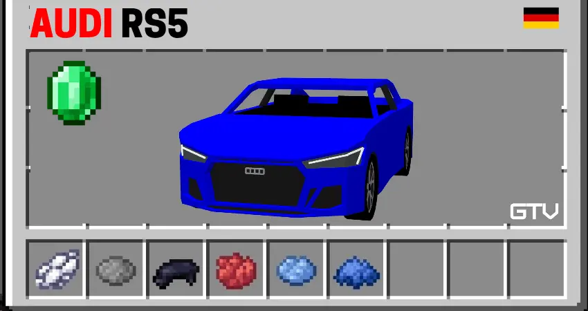 Getting one is straightforward: feed an Emerald into a Stonecutter to cut a Chassis, then use the pack’s in-game recipes to turn that base into the RS model you want. Colors are customizable, so build two of the same car in different paints for team events or district themes. Park by marking a two-block-wide bay with lanterns; it’s easier to find at night and keeps villagers from crowding the bumper.