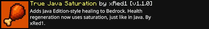 True Java Saturation mod flips Bedrock’s eat-and-forget loop into a real choice. Just like Java, health regen only kicks in when your hunger bar is full, and every heart you heal drains a hidden saturation pool first. That means what you eat matters. Steak, porkchops, and golden carrots are clutch because their saturation keeps regen humming; bread is fine in a pinch, while cookies and melons are basically morale food.