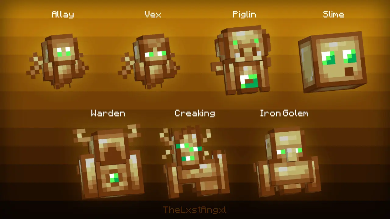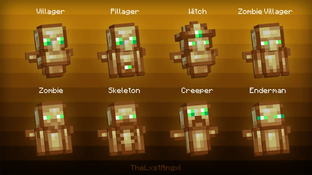 Some 3D Mob Totems Mod takes the regular totem of undying and makes it actually fun to look at. Instead of a tiny flat icon, you’re holding a full 3D model themed around classic Minecraft mobs: villagers, pillagers, zombies, skeletons, creepers, Endermen, Allays, Piglins, slimes, Wardens, Iron Golems, and more. The core mechanic stays the same—these are still proper totems that pop and save you from death—only now your “oops” moment has way more personality.