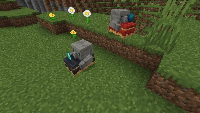 The cloth itself is totally flexible. If you don’t like the color anymore, crouch and use shears to strip it off, then apply a different carpet and instantly change the look. After wandering for a bit, a Tuff Golem will sit down on its own. That’s your chance to turn it into a statue: while it’s sitting, sneak and use a honeycomb to convert it into a Tuff Golem Statue block. It only works if there’s air or water below, but once placed, you can pick it up, move it, recolor it with carpets again, or clear the cloth with shears.
