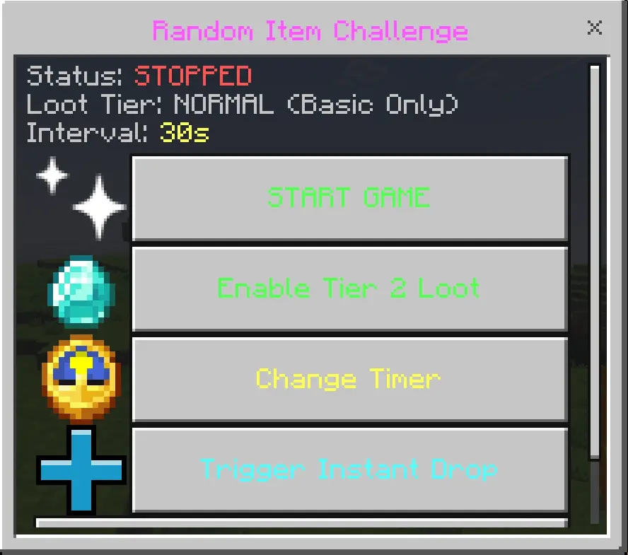 In a fresh survival world, Random Item Challenge Mod flips the early game on its head. You might get obsidian before you even punch a tree, or you might be stuck juggling junk while trying not to die. On Realms or servers with friends, it turns into a full-on competition: who can beat bosses, travel dimensions, or just stay alive the longest using pure RNG loot instead of normal progression. It’s perfect for quick challenge streams, Skyblock-style runs, or just spicing up a boring old world when you’re tired of the usual grind.