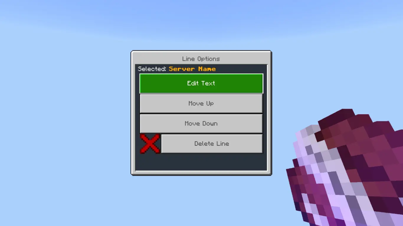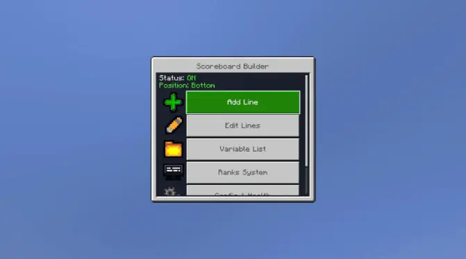 To get started, you give yourself admin with /tag @s add admin, then you get the config item using /give @s lildanlid:scoreboardmenu. Once you’ve got it in hand, you right-click (use) the item to open the editor and start adding lines. That’s it—no extra hoops, no complicated setup.