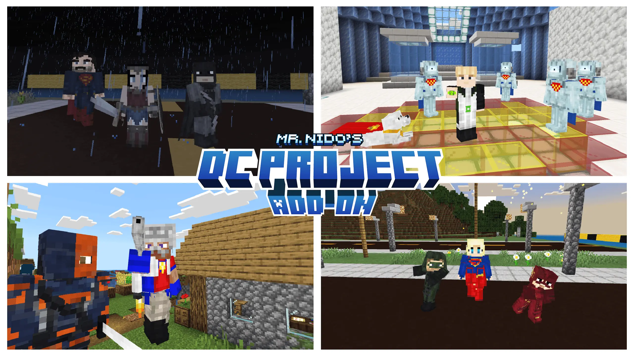 DC Project mod lets you craft DC superhero suits in Survival with a sewing machine, slot their powers, and fly when Education Edition is on. Bump simulation distance so world structures spawn clean during hero runs.