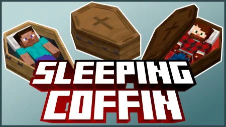 Sleeping Coffins mod swaps beds for stylish coffins that set spawn and skip the night. On servers, only coffins count—everyone needs to sleep in one to pass time, so build a proper crypt and tuck in.