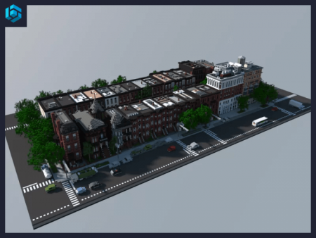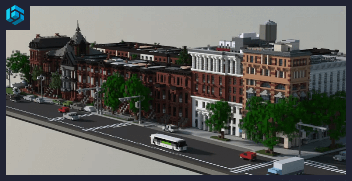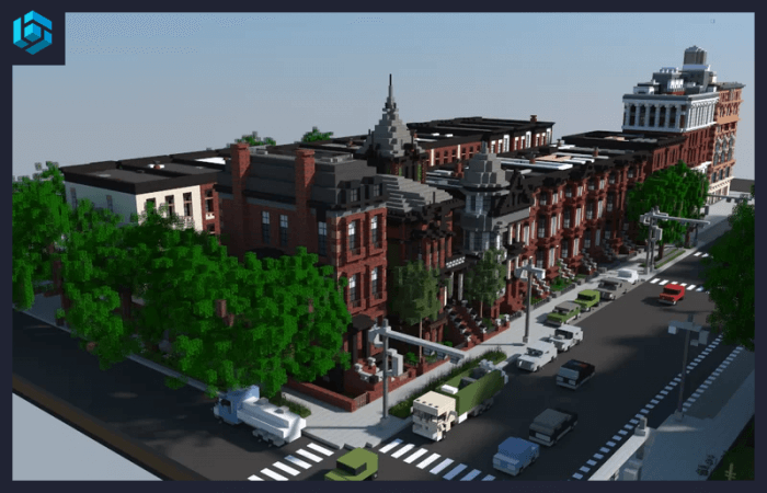 Brooklyn Style - a map with a part of a new city that will be added to Minecraft Bedrock. Brooklyn-style area of the city is built on the map!
