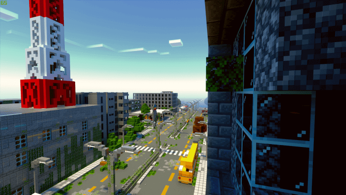 Zombiepolis - Map with Post Apocalyptic City in the Minecraft Bedrock game world.