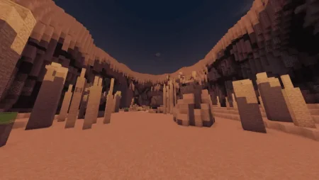 Heat haze wobbles over a line of sandstone ledges and the floor looks innocent—until it isn’t. In The Desert Run Map, sand is the problem. Treat it like lava: touch it and the run punishes you, so the safest path is a ribbon of non-sand blocks—sandstone ribs, slab bridges, narrow ridgebacks—that demand clean footwork. The course stays readable, but hesitation costs hearts and momentum fast.