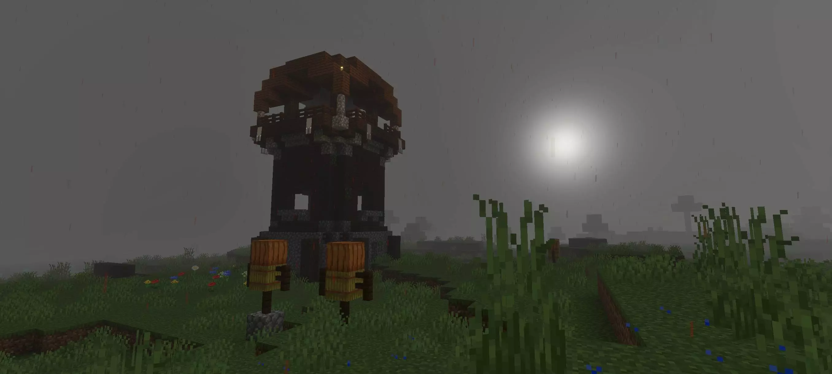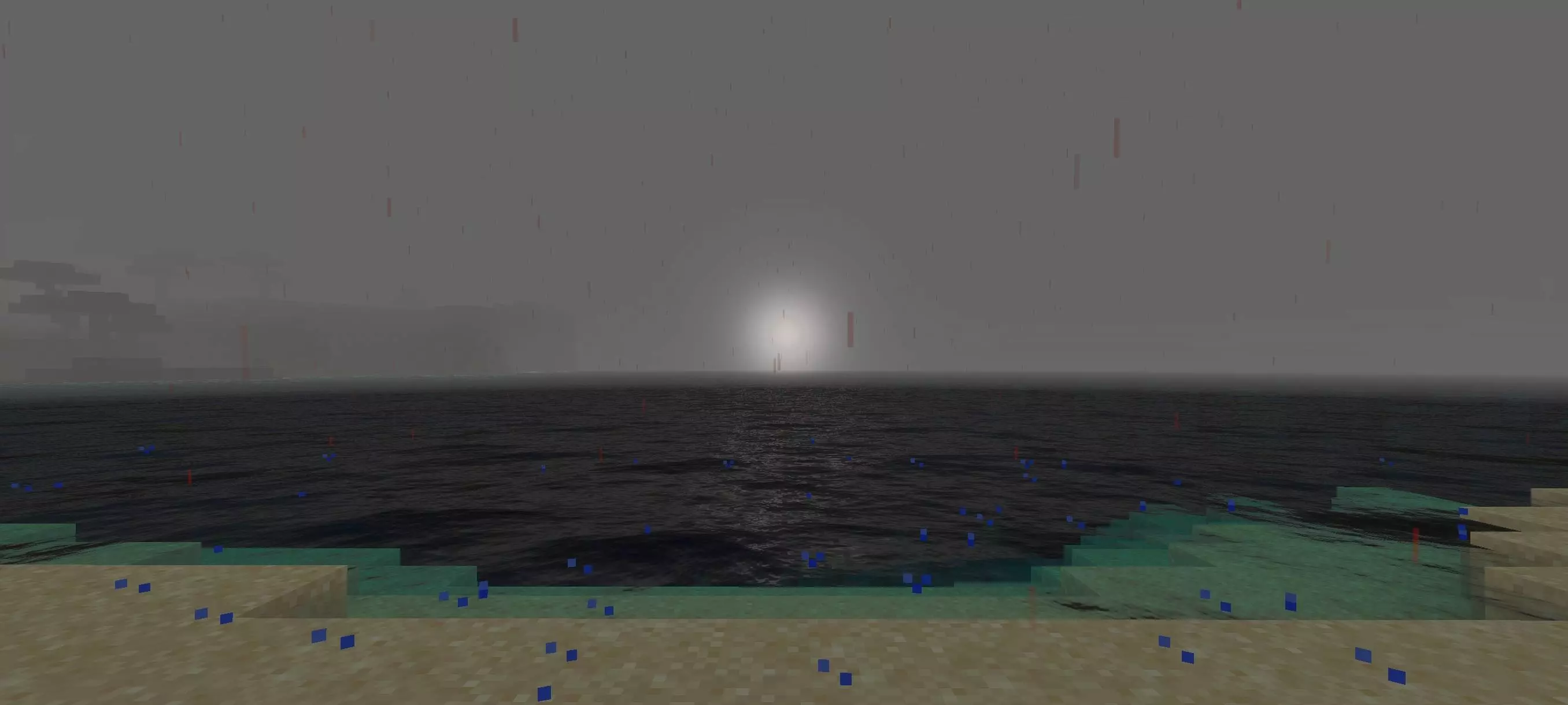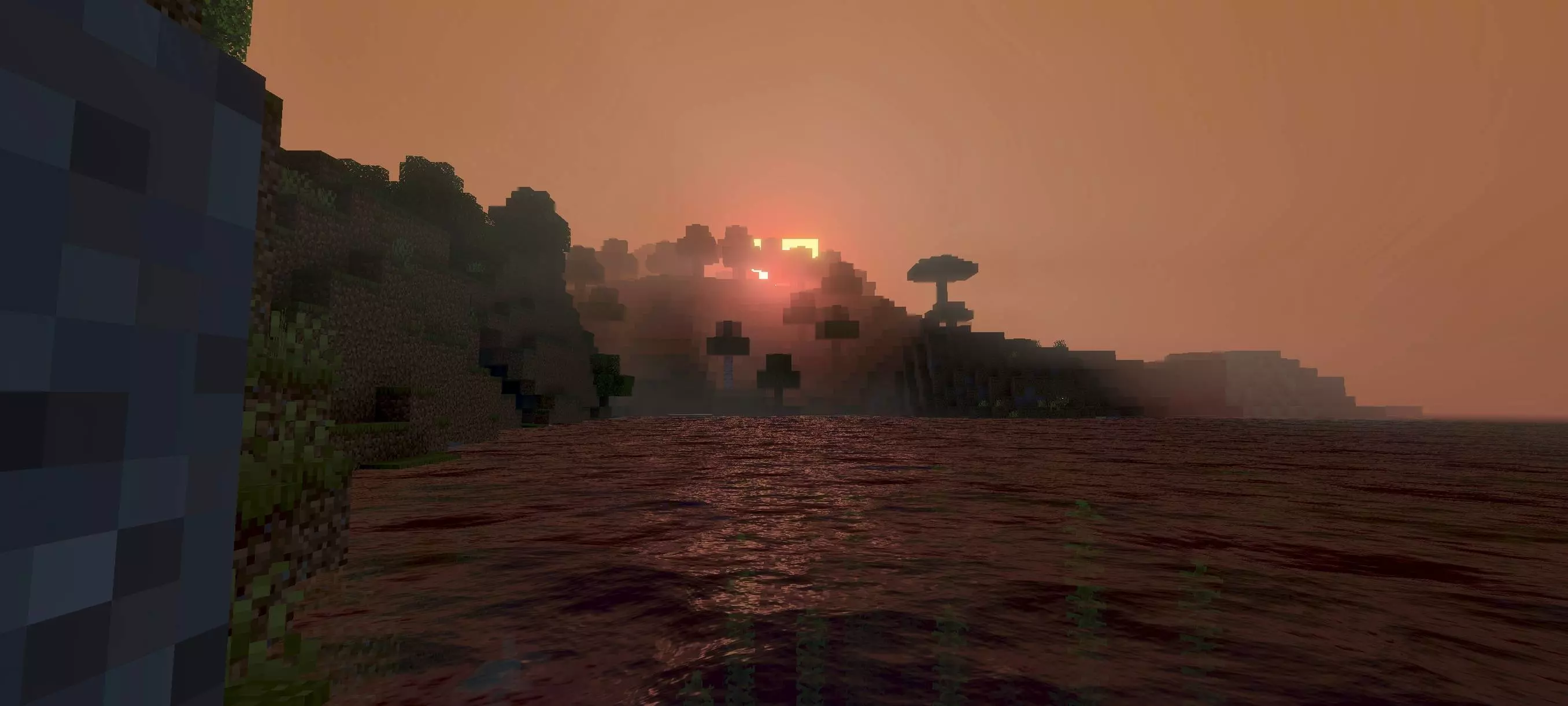 The shader also adds the big horror touches that change how night feels. Blood rain and a blood moon give the world that “something is wrong” energy, especially when you’re traveling, hunting mobs, or just trying to get back to base before things get messy. It’s the kind of visual pack that makes even normal terrain look unfamiliar, like you loaded into a different game instead of your usual survival world.