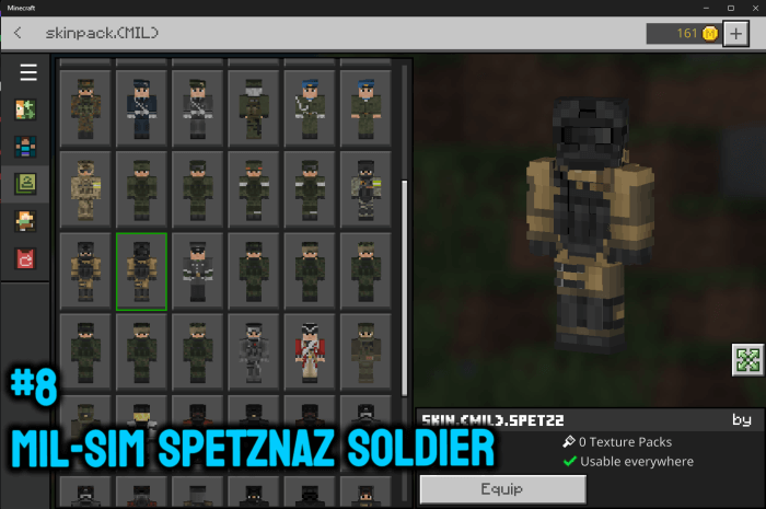 Military Skins mine 12-02-2024, 08:23 740 Skins Military Skins a lot of new military minecraft skins.military.mcpack [403.86 Kb] (downloads: 51)