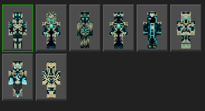 Skulk Knights Skin Pack mine 26-01-2025, 10:22 620 Skins Skulk Knights - a skin pack with 8 knight skins shown in the screenshot.