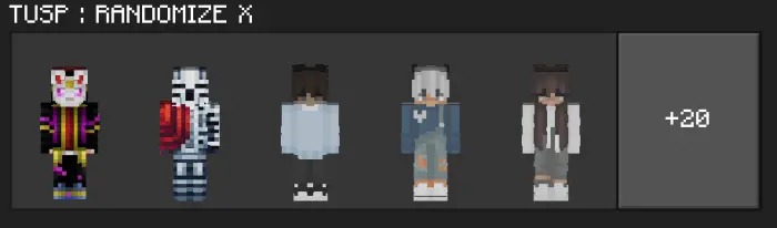 TUSP : RANDOMIZE X Skin Pack mine 6-03-2025, 07:32 393 Skins TUSP : RANDOMIZE X Skin Pack gives you the opportunity to play with new random skins.randomize-x.mcpack [27.04 Kb] (downloads: 26)