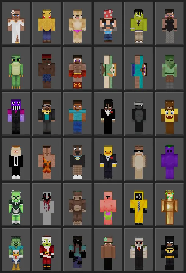 Random Meme Skinpack is for those days when you don’t want a “main skin,” you just want chaos. One minute you’re a cursed meme, next you’re a chill animal, then some cartoon-looking goofball running through spawn like you own the place. It’s a mix of random skins and meme skins that still look clean enough to use on real servers, not just as a throwaway joke for five minutes.