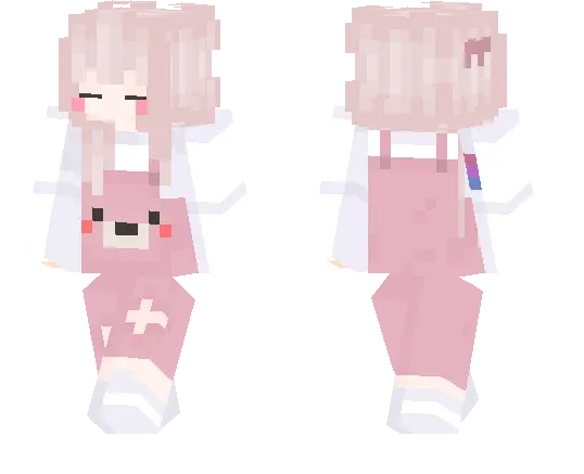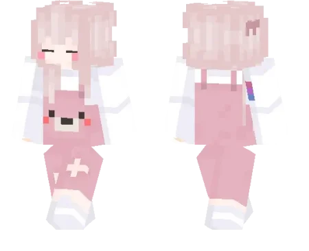 In normal survival, this skin fits players who love building cozy houses, decorating bases, and running around villages like it’s their personal playground. You can be farming, trading, or exploring caves and still look like that one cheerful player everyone recognizes by the pink hair sprinting past. Armor doesn’t completely hide the personality either; the colors still peek out enough to keep your character readable in screenshots.