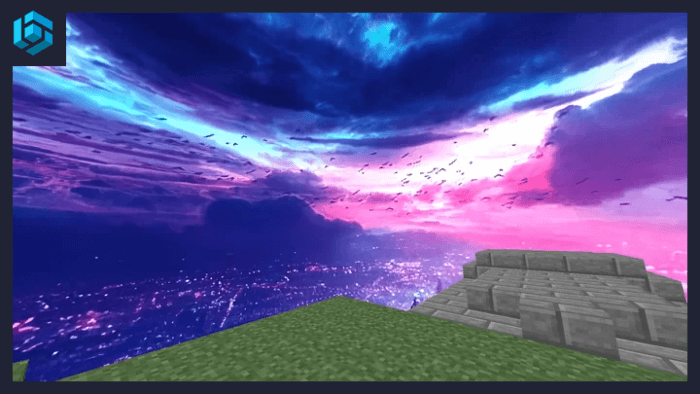 City At Night [Custom SKY] - texture pack will change the look of the sky in Minecraft Bedrock. You will get a mega epic sky in the style of a night city. Look at the photo how it looks.